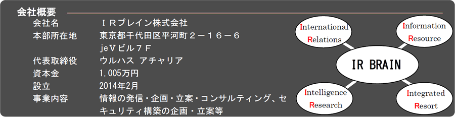 Effective and proficient information gathering activity is an important keyword that separates the success or failure and a threat of an existence for not only in the countries but also for companies. We conduct intelligence research in cooperation with experts inside and outside the country who are an expert and familiar in the intelligence field. We believe it is the first step of success to control the fight of information. We also provide reports that meet the needs of our clients.